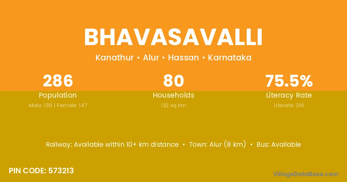 Bhavasavalli village has a total population of 286 people, of which 139 are males and 147 are females.