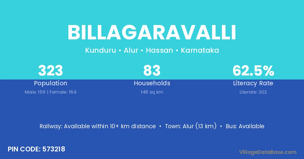 Billagaravalli village has a total population of 323 people, of which 159 are males and 164 are females.