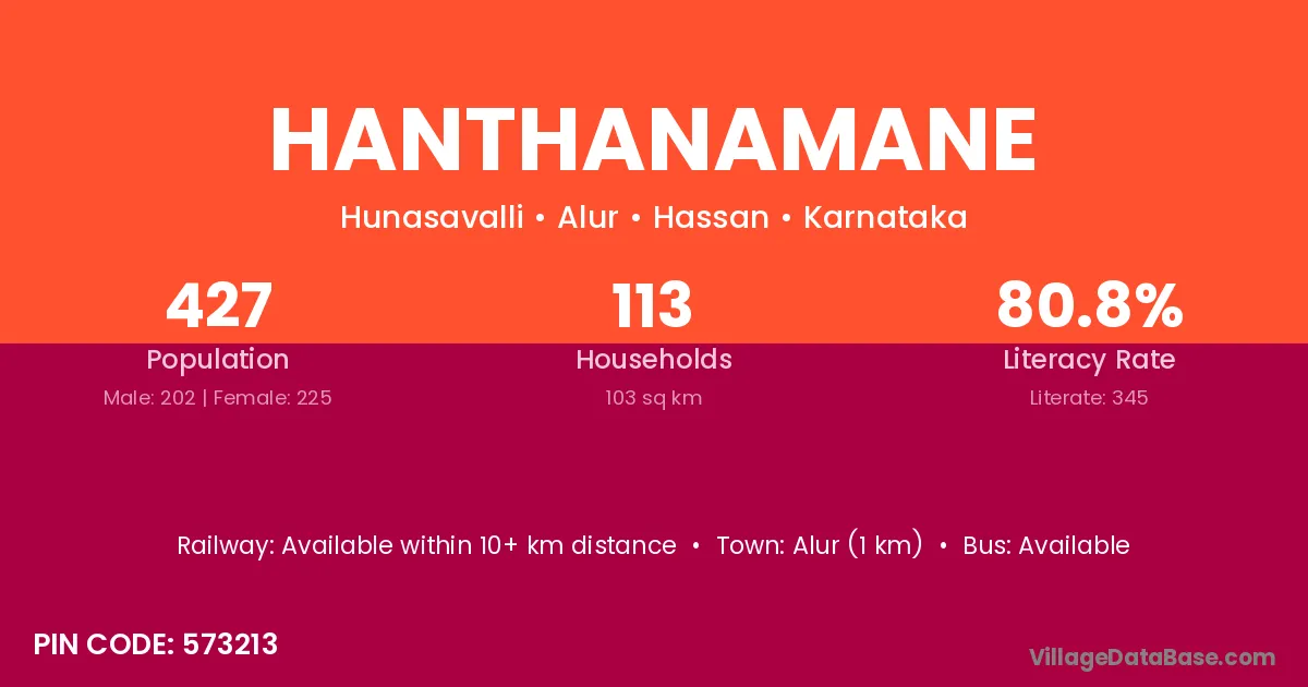 Hanthanamane village has a total population of 427 people, of which 202 are males and 225 are females.