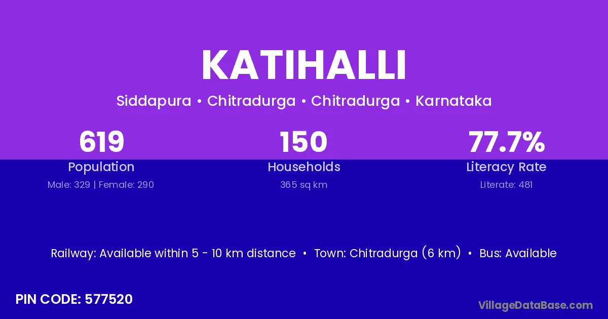 The literacy rate of Katihalli village is 65.08%. Male literacy stands at 67.48% and female literacy at 62.79%.