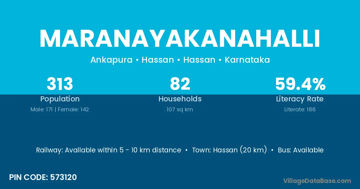 The literacy rate of Maranayakanahalli village is 60.29%. Male literacy stands at 62.00% and female literacy at 58.65%.