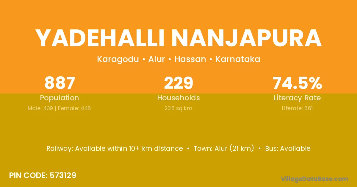 Yadehalli Nanjapura village has a total population of 887 people, of which 439 are males and 448 are females.