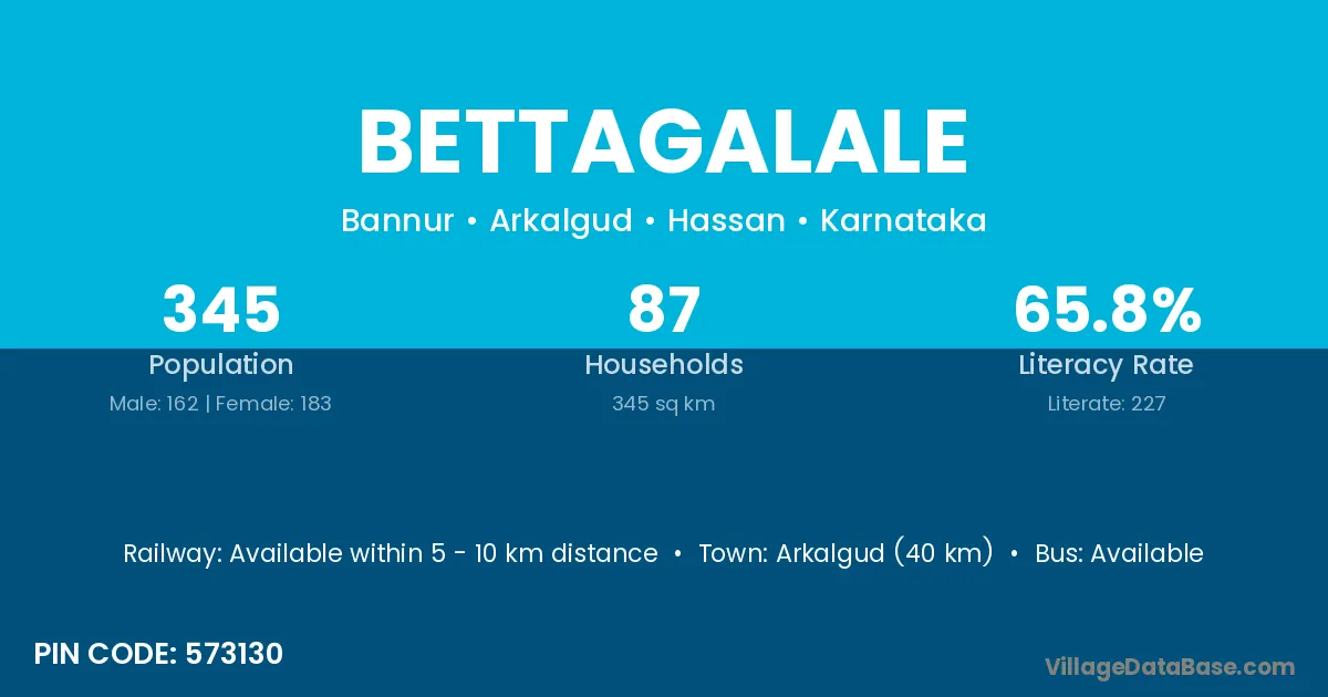 Arkalgud (40 km) is the nearest town to Bettagalale village for major economic activities and is located approximately 40 km away.