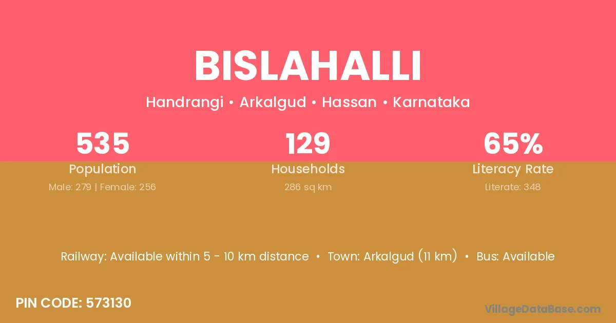 Arkalgud (11 km) is the nearest town to Bislahalli village for major economic activities and is located approximately 11 km away.