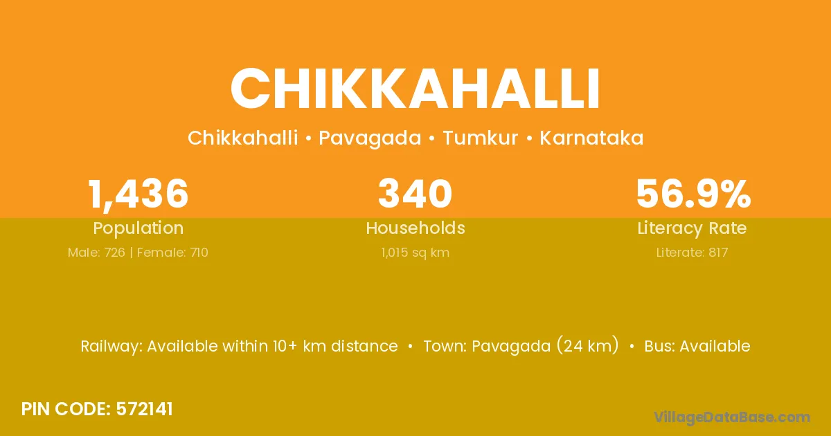 Chikkahalli village has a total population of 2,236 people, of which 1,069 are males and 1,167 are females.