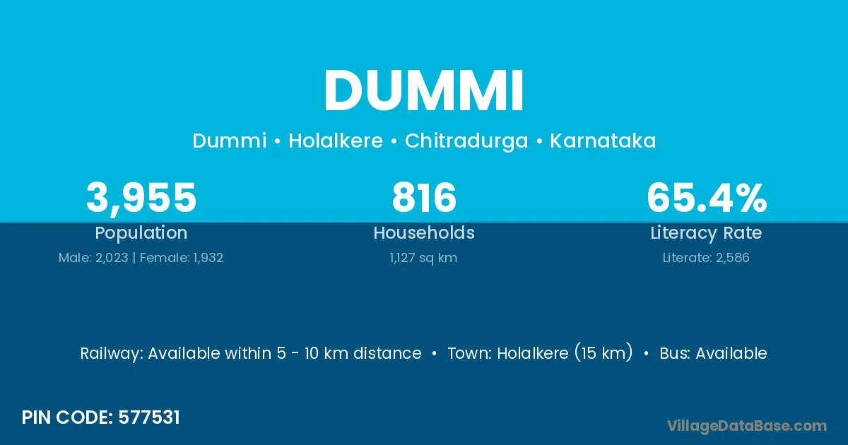 Arkalgud (8 km) is the nearest town to Dummi village for major economic activities and is located approximately 8 km away.