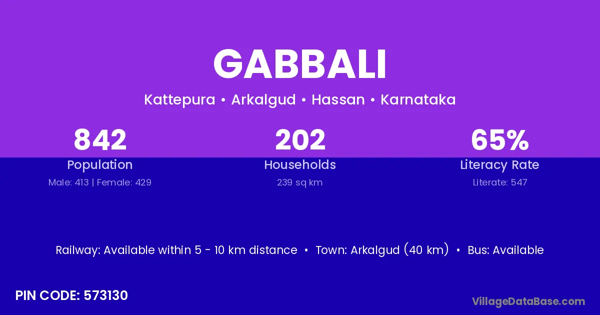 Arkalgud (40 km) is the nearest town to Gabbali village for major economic activities and is located approximately 40 km away.