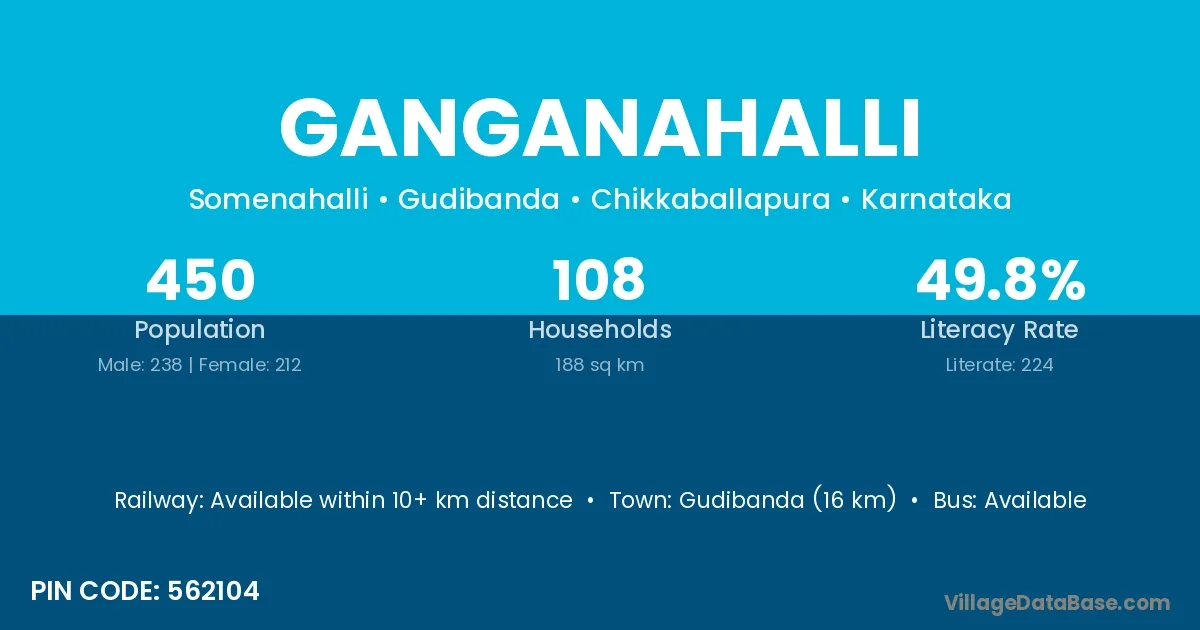 The literacy rate of Ganganahalli village is 61.17%. Male literacy stands at 68.12% and female literacy at 54.07%.