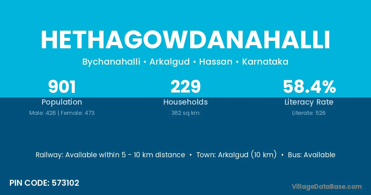 Hethagowdanahalli village has a total population of 901 people, of which 428 are males and 473 are females.