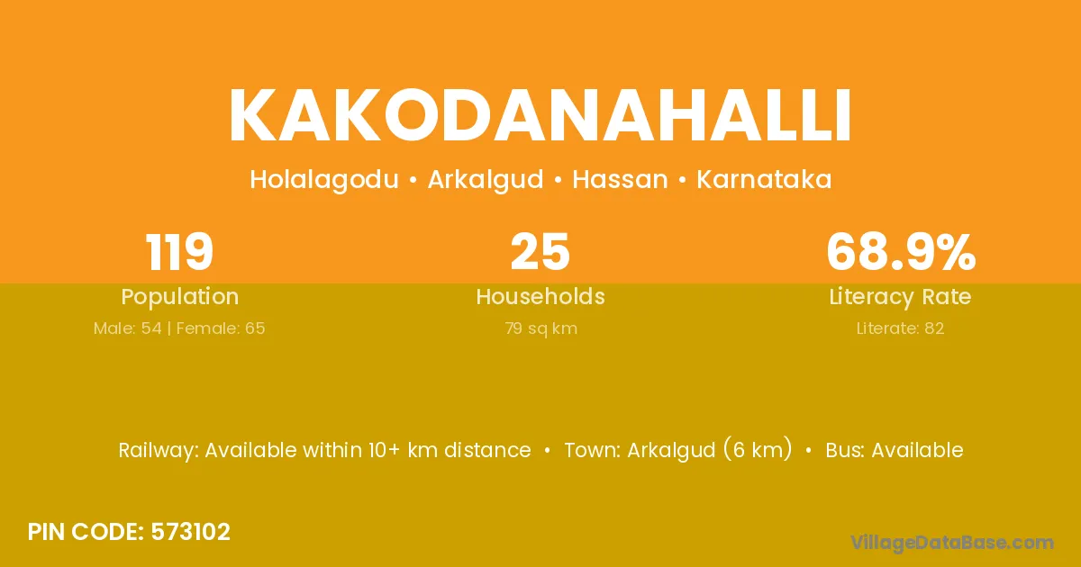 Arkalgud (6 km) is the nearest town to Kakodanahalli village for major economic activities and is located approximately 6 km away.