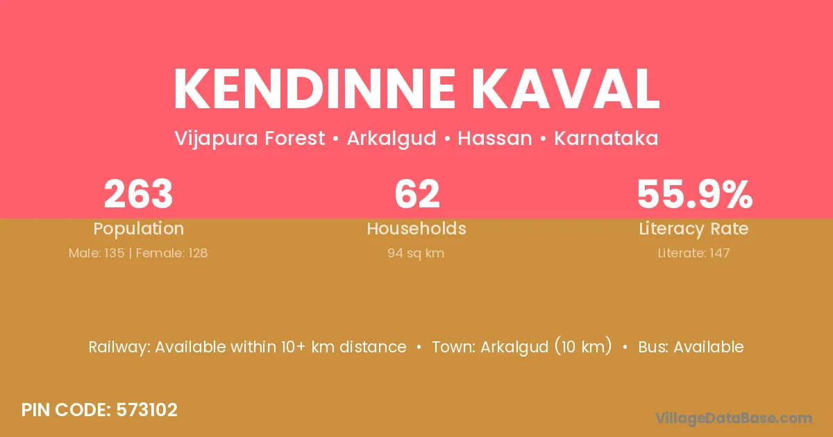 Arkalgud (10 km) is the nearest town to Kendinne Kaval village for major economic activities and is located approximately 10 km away.