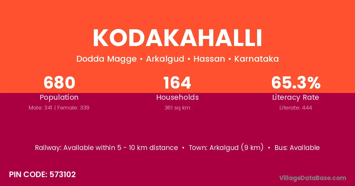 Arkalgud (9 km) is the nearest town to Kodakahalli village for major economic activities and is located approximately 9 km away.