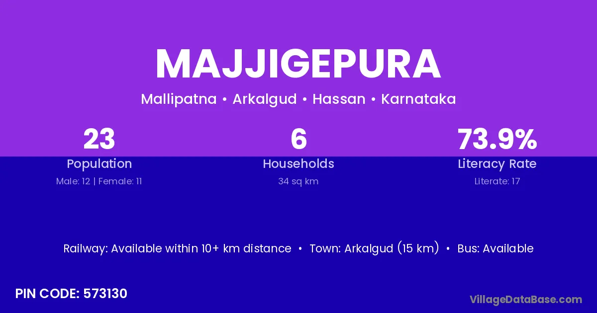 Arkalgud (15 km) is the nearest town to Majjigepura village for major economic activities and is located approximately 15 km away.