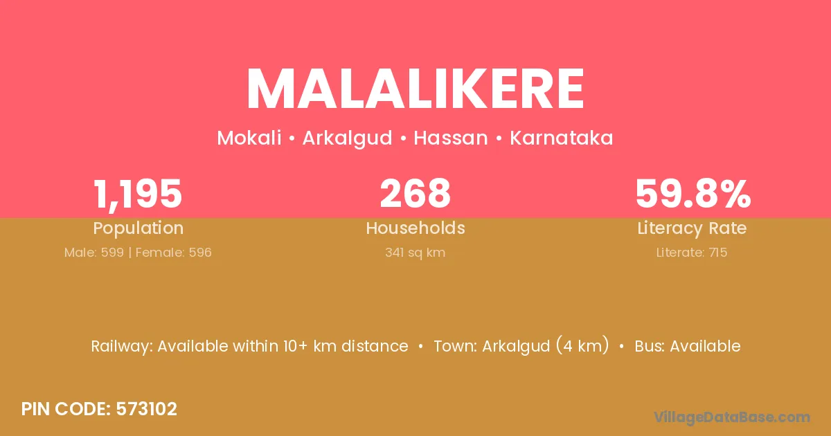 Arkalgud (4 km) is the nearest town to Malalikere village for major economic activities and is located approximately 4 km away.