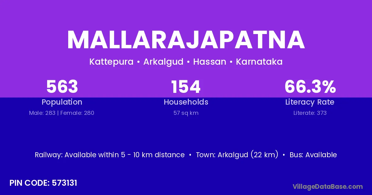 Mallarajapatna village has a total population of 563 people, of which 283 are males and 280 are females.