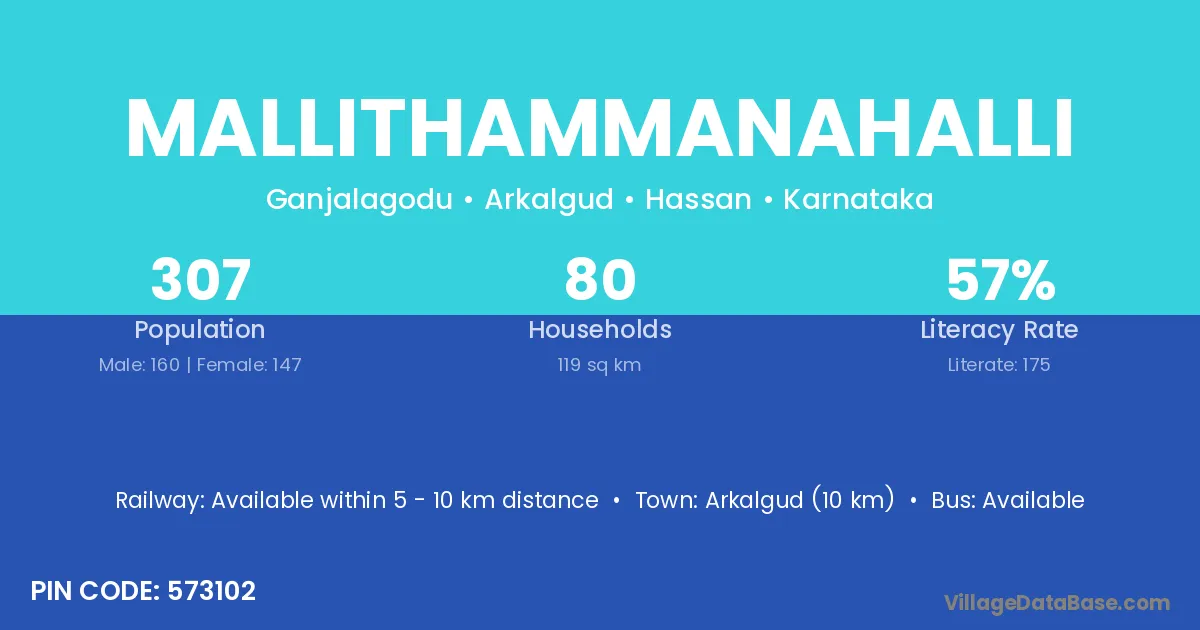 Arkalgud (10 km) is the nearest town to Mallithammanahalli village for major economic activities and is located approximately 10 km away.