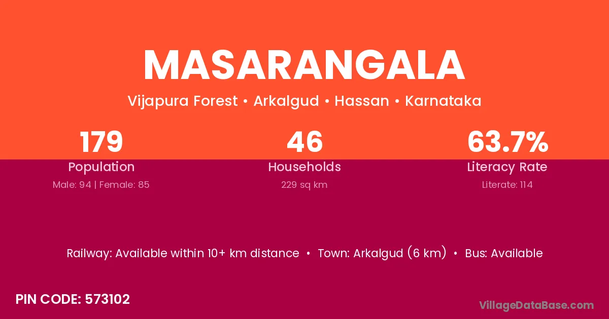 Arkalgud (6 km) is the nearest town to Masarangala village for major economic activities and is located approximately 6 km away.