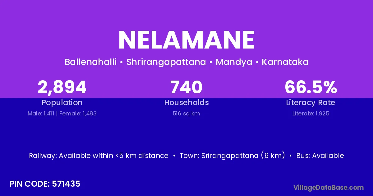 Arkalgud (3 km) is the nearest town to Nelamane village for major economic activities and is located approximately 3 km away.
