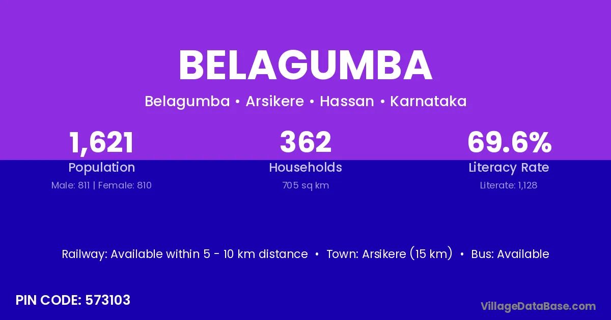 Arsikere (15 km) is the nearest town to Belagumba village for major economic activities and is located approximately 15 km away.
