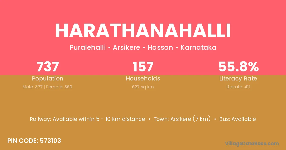 Arsikere (7 km) is the nearest town to Harathanahalli village for major economic activities and is located approximately 7 km away.