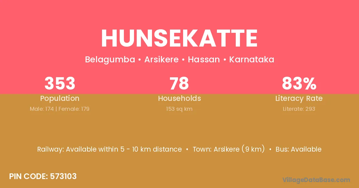 Arsikere (9 km) is the nearest town to Hunsekatte village for major economic activities and is located approximately 9 km away.