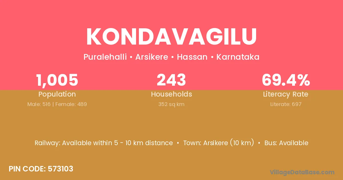 Arsikere (10 km) is the nearest town to Kondavagilu village for major economic activities and is located approximately 10 km away.