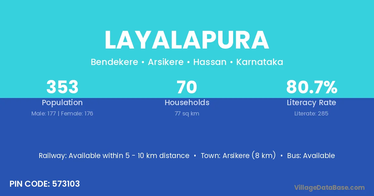 Arsikere (8 km) is the nearest town to Layalapura village for major economic activities and is located approximately 8 km away.