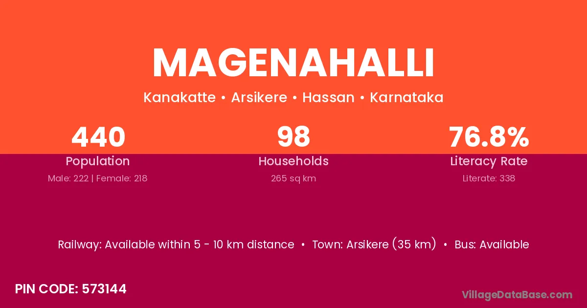 Arsikere (35 km) is the nearest town to Magenahalli village for major economic activities and is located approximately 35 km away.