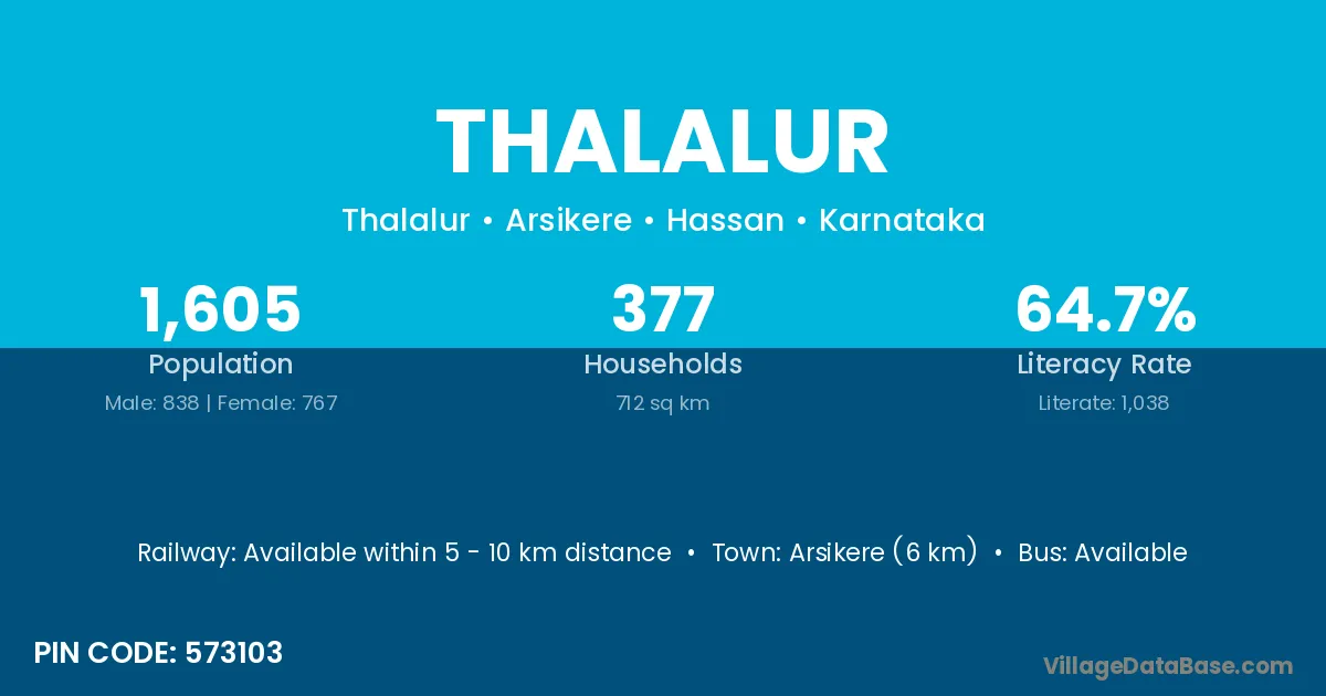 Arsikere (6 km) is the nearest town to Thalalur village for major economic activities and is located approximately 6 km away.
