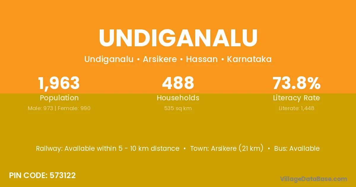 Arsikere (21 km) is the nearest town to Undiganalu village for major economic activities and is located approximately 21 km away.