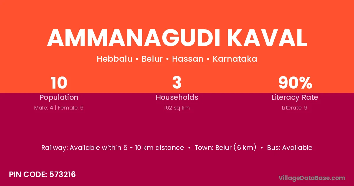Belur (6 km) is the nearest town to Ammanagudi Kaval village for major economic activities and is located approximately 6 km away.