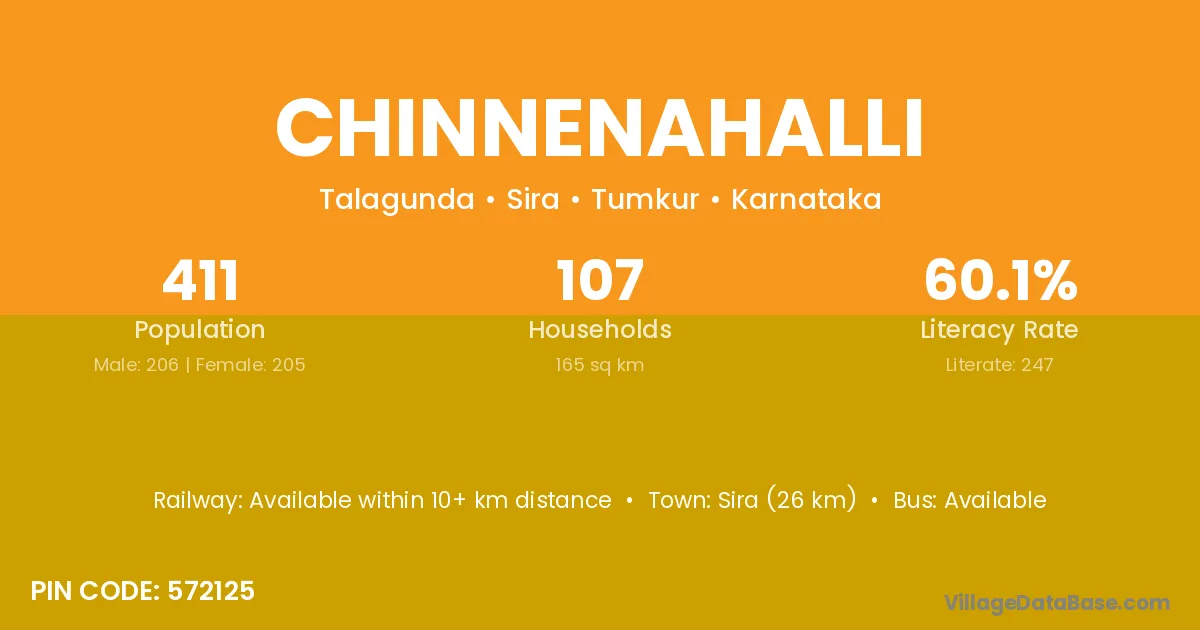 Chinnenahalli village has a total population of 427 people, of which 207 are males and 220 are females.