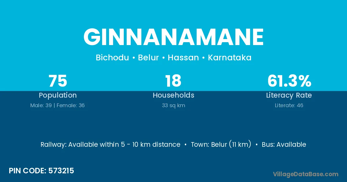 Belur (11 km) is the nearest town to Ginnanamane village for major economic activities and is located approximately 11 km away.
