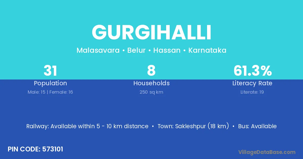 Sakleshpur (18 km) is the nearest town to Gurgihalli village for major economic activities and is located approximately 18 km away.