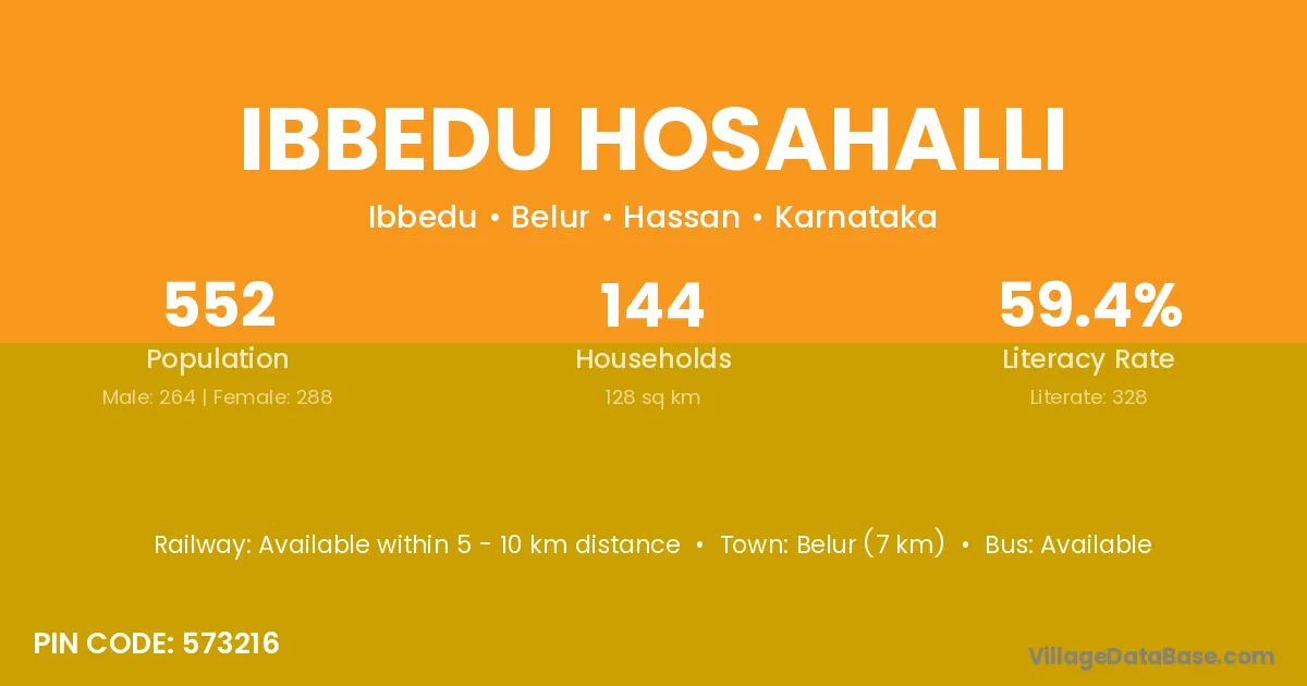 Ibbedu Hosahalli village has a total population of 552 people, of which 264 are males and 288 are females.
