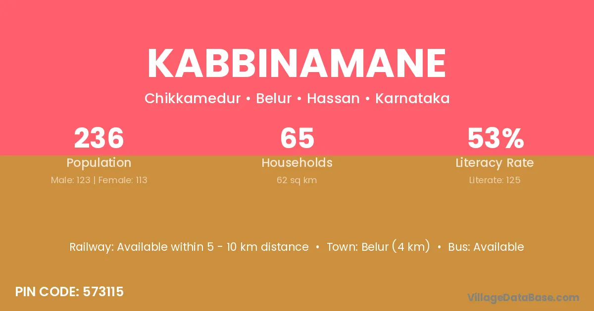 Belur (4 km) is the nearest town to Kabbinamane village for major economic activities and is located approximately 4 km away.