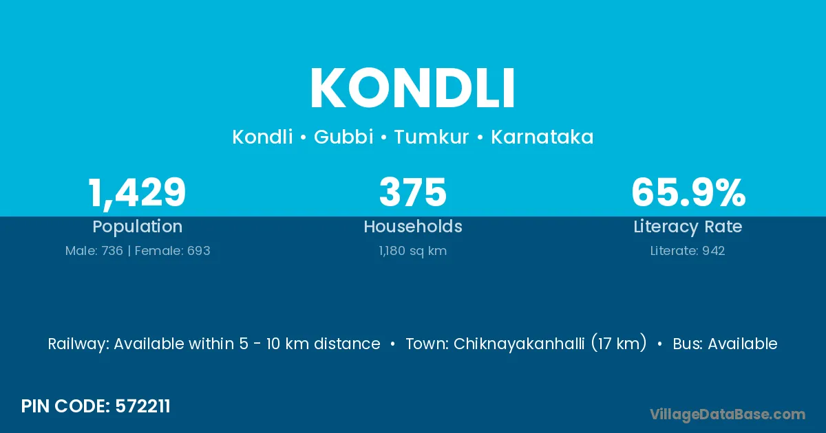 According to Census 2011 information, the village code of Kondli village is 573125.