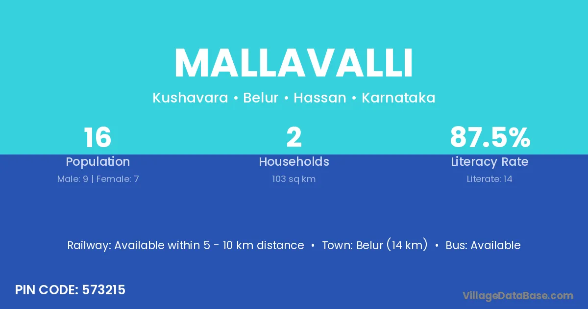 Belur (14 km) is the nearest town to Mallavalli village for major economic activities and is located approximately 14 km away.