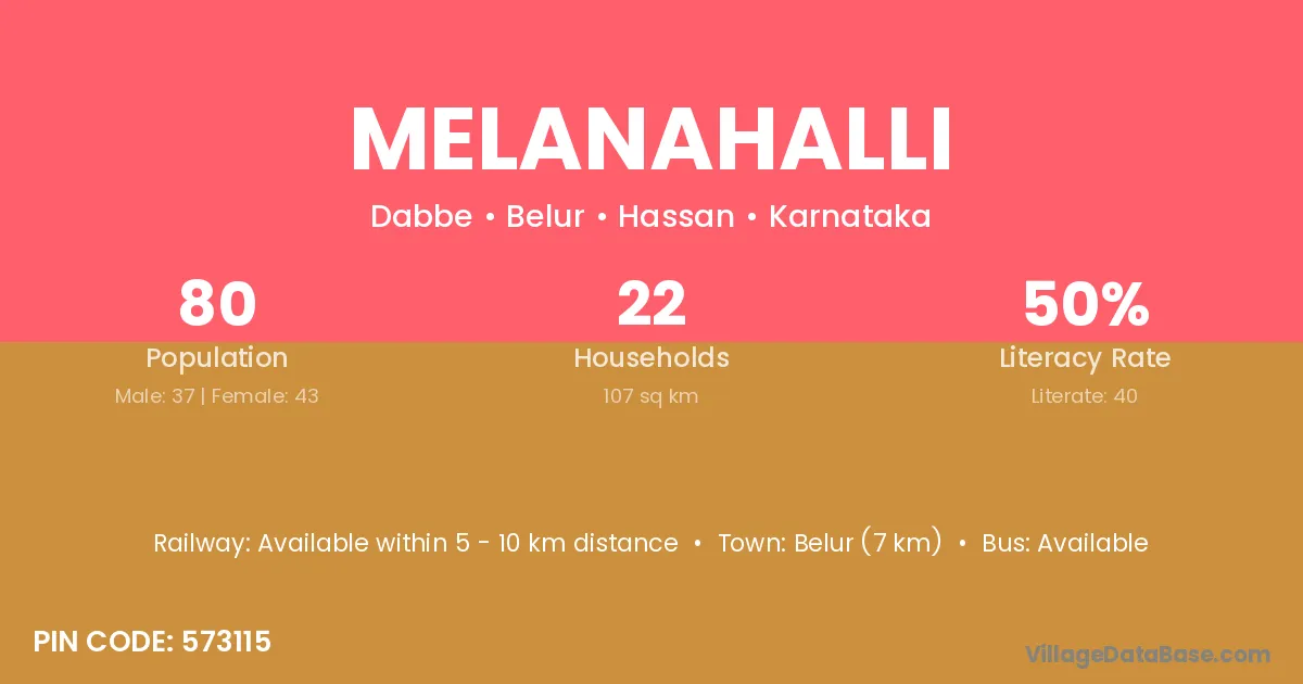 Belur (7 km) is the nearest town to Melanahalli village for major economic activities and is located approximately 7 km away.