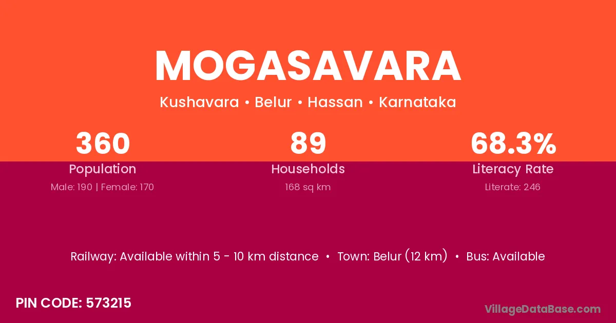 Belur (12 km) is the nearest town to Mogasavara village for major economic activities and is located approximately 12 km away.