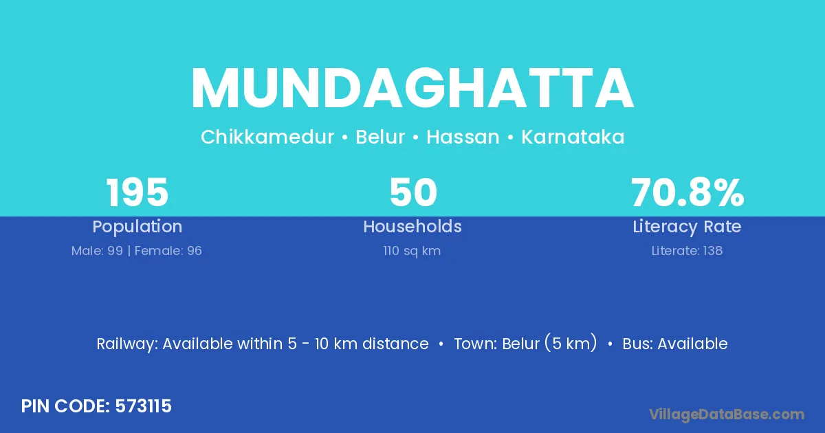 Mundaghatta village has a total population of 195 people, of which 99 are males and 96 are females.