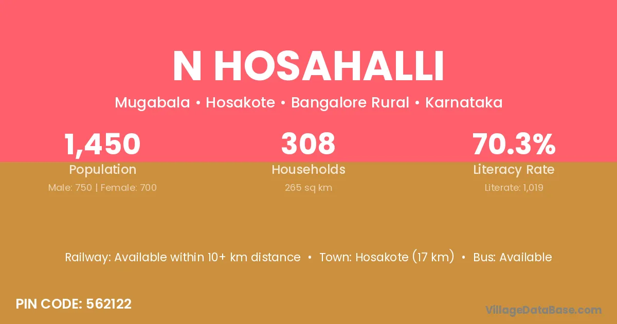 Belur (13 km) is the nearest town to N Hosahalli village for major economic activities and is located approximately 13 km away.
