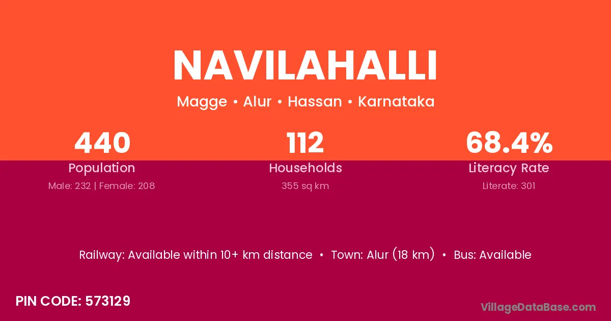 Belur (9 km) is the nearest town to Navilahalli village for major economic activities and is located approximately 9 km away.