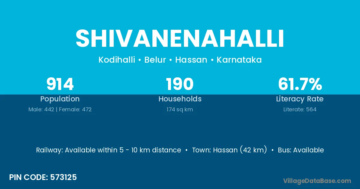 Hassan (42 km) is the nearest town to Shivanenahalli village for major economic activities and is located approximately 42 km away.