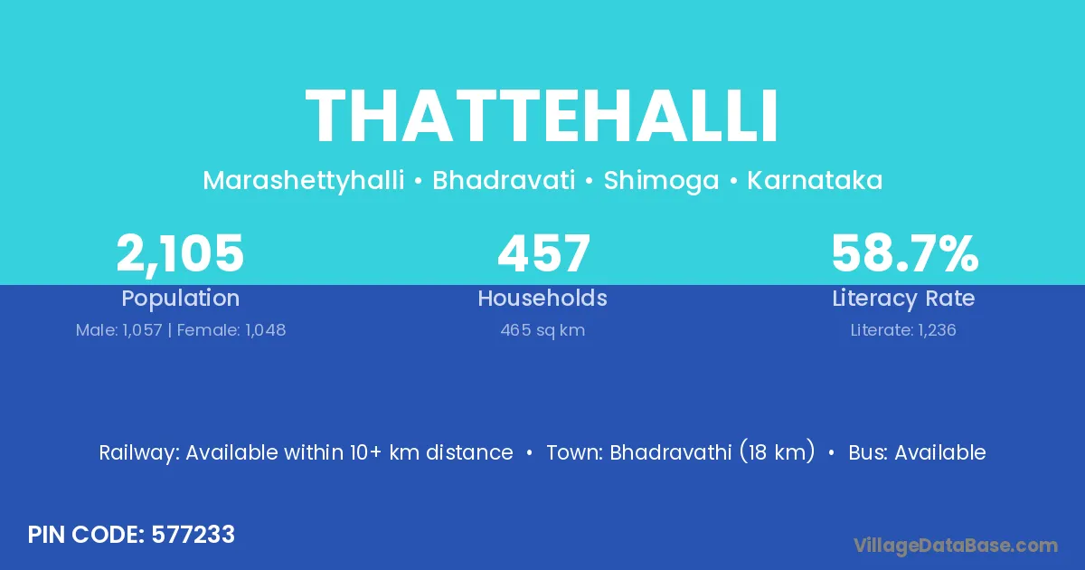 The literacy rate of Thattehalli village is 65.09%. Male literacy stands at 70.28% and female literacy at 59.89%.