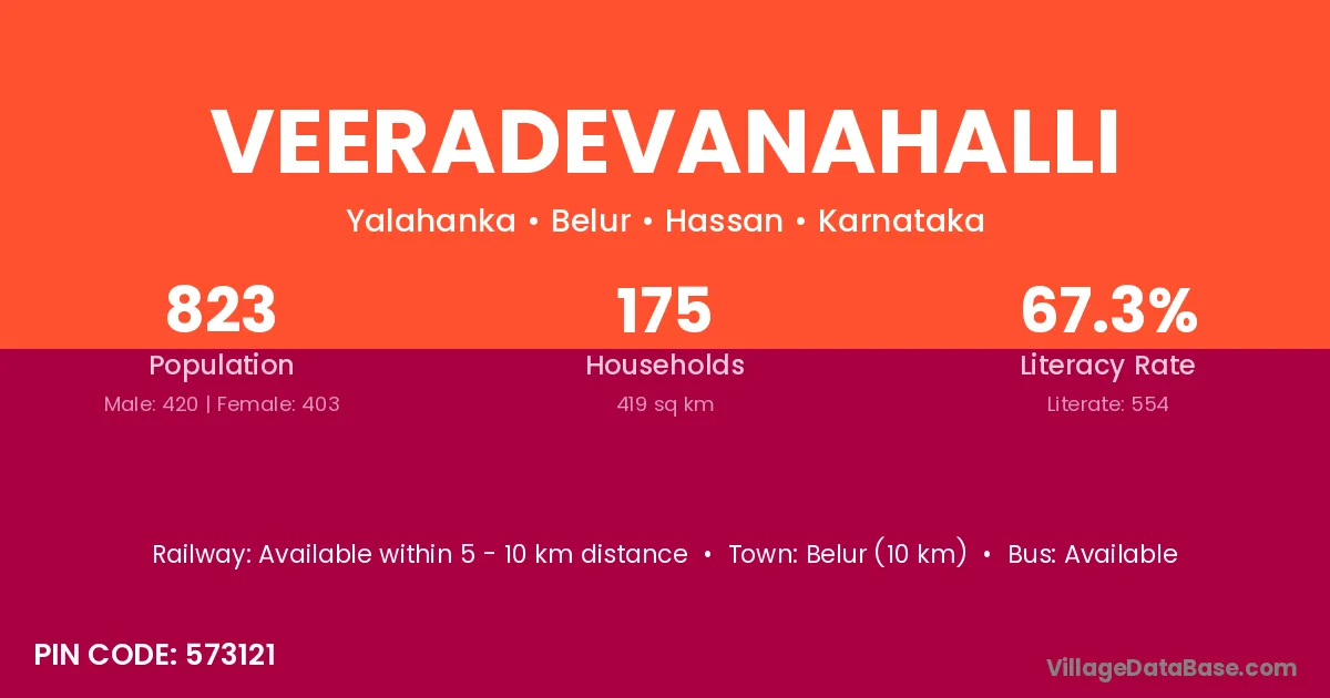 Veeradevanahalli village has a total population of 823 people, of which 420 are males and 403 are females.