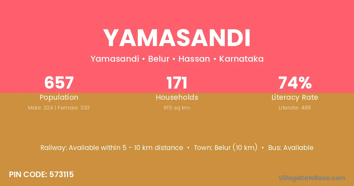 Belur (10 km) is the nearest town to Yamasandi village for major economic activities and is located approximately 10 km away.