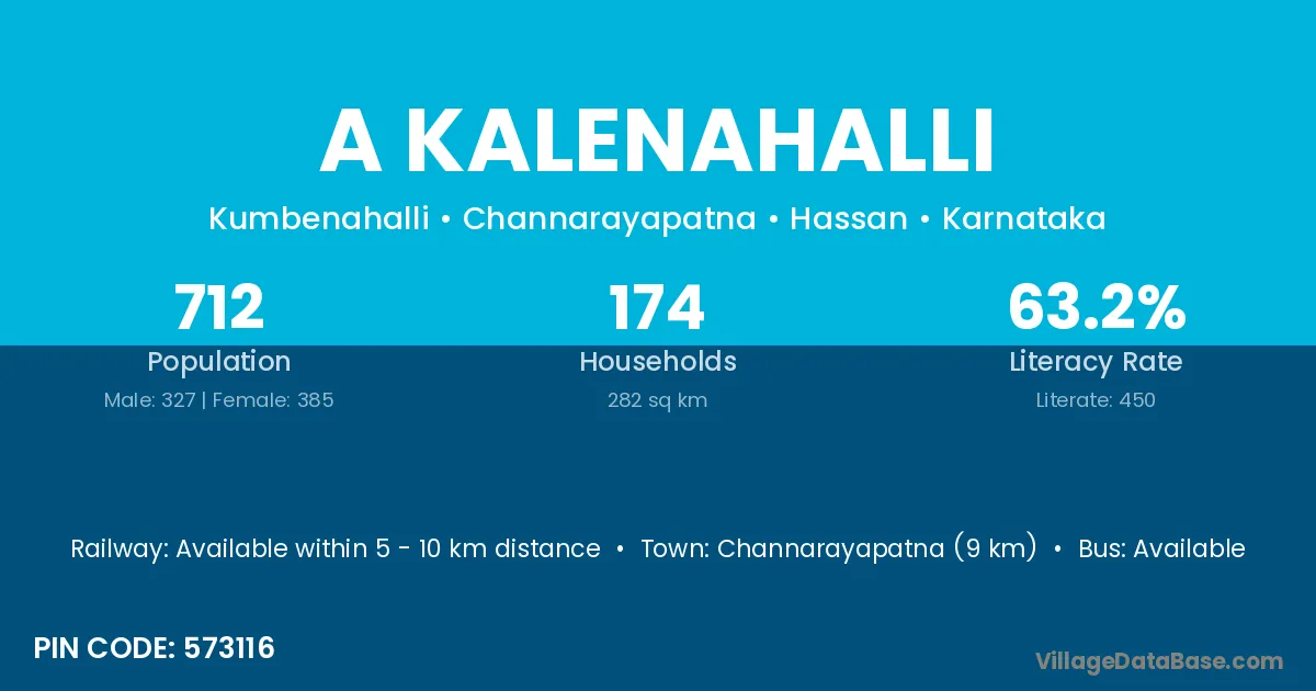 Channarayapatna (9 km) is the nearest town to A Kalenahalli village for major economic activities and is located approximately 9 km away.