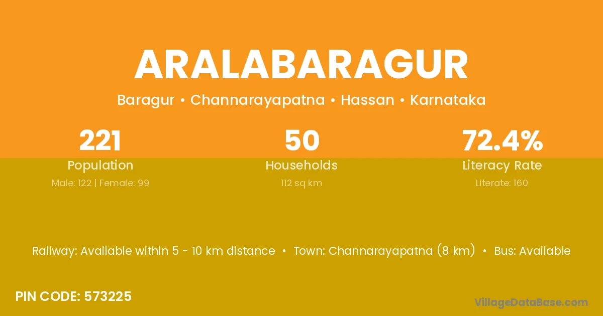 Channarayapatna (8 km) is the nearest town to Aralabaragur village for major economic activities and is located approximately 8 km away.