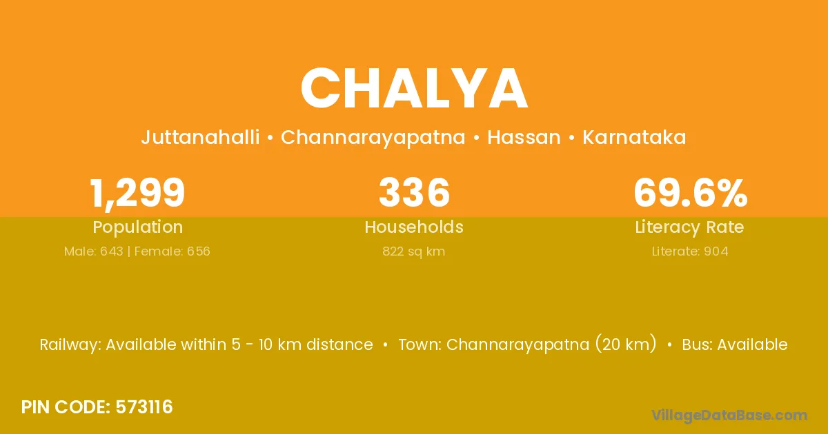 Channarayapatna (20 km) is the nearest town to Chalya village for major economic activities and is located approximately 20 km away.